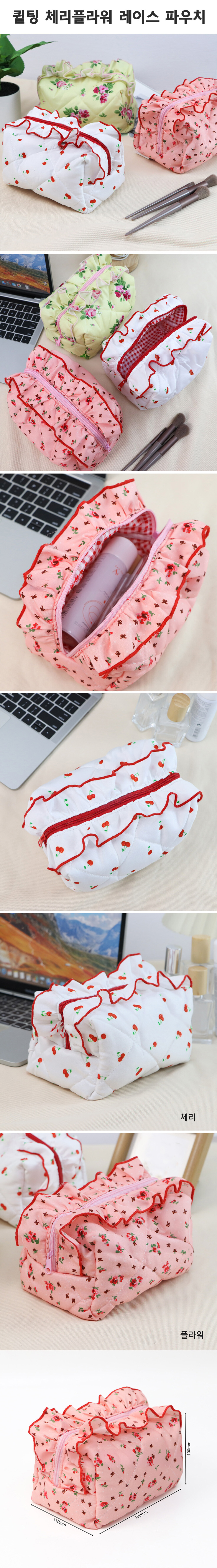 퀼팅 체리플라워 레이스 파우치
